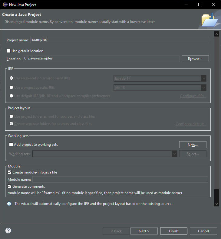 Create a new Java project: Open Eclipse and create a new Java project by clicking on File > New > Java Project. Give your project a name, such as MyFirstEclipseProject, and click on Next. Configure your project settings, such as the Java version to use, and click on Finish.